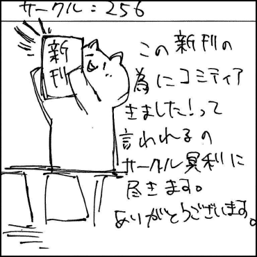 最近の傾向としてSNSでの宣伝が一般的になり、目的のサークル以外に足を運ばない方が増える傾向があります。こうしたWEBカタログにせよ、見本誌コーナーのレイアウト調整にせよ、「思いがけない出会い」を活性化しようという目論見があります。