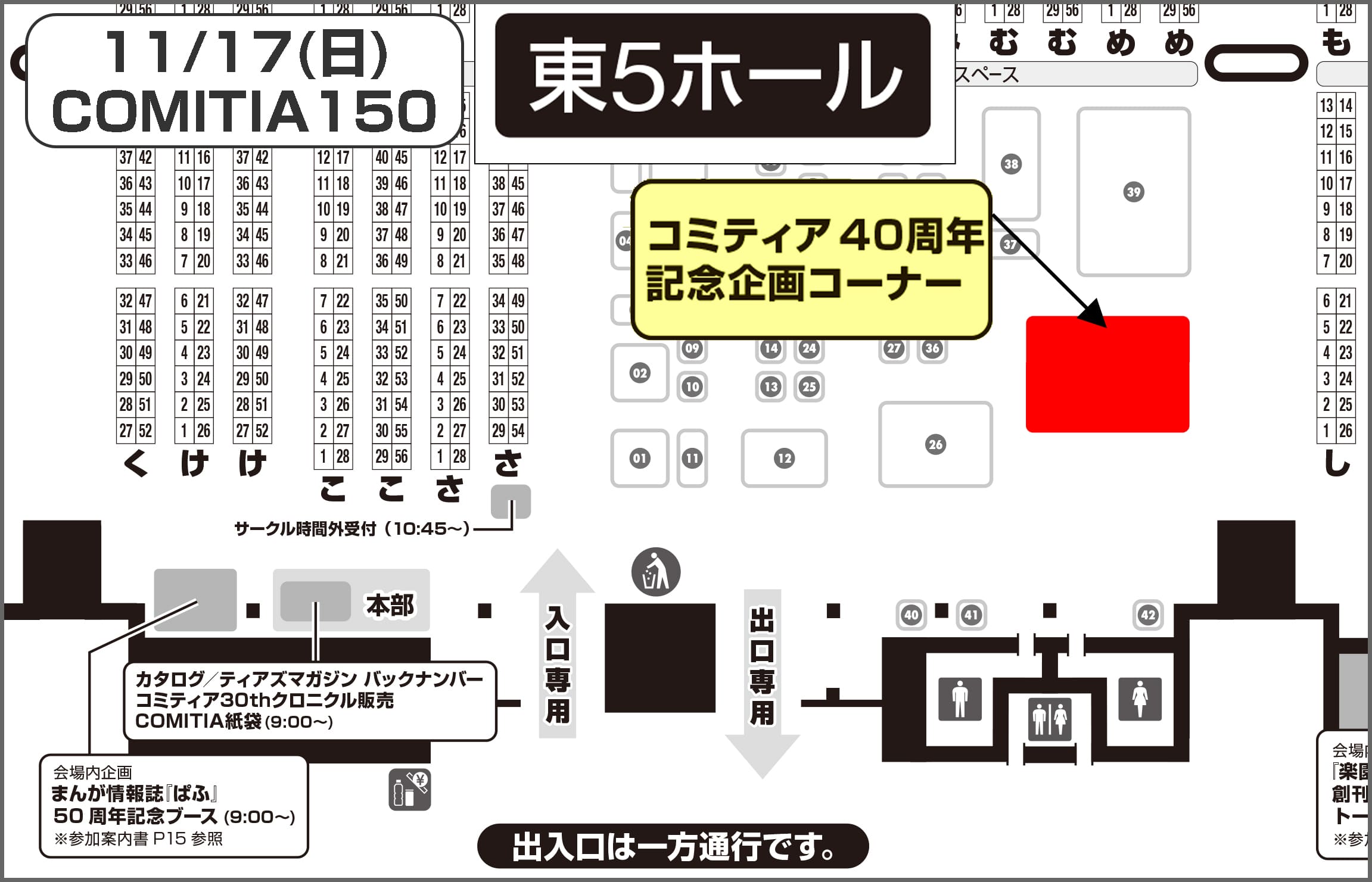ラストを飾る「COMITIA150」(2024年11月17日)は150回目の記念回でもあり、第1回(1984年11月18日)からほぼ40年後の開催となります。ぜひふるってご参加ください!