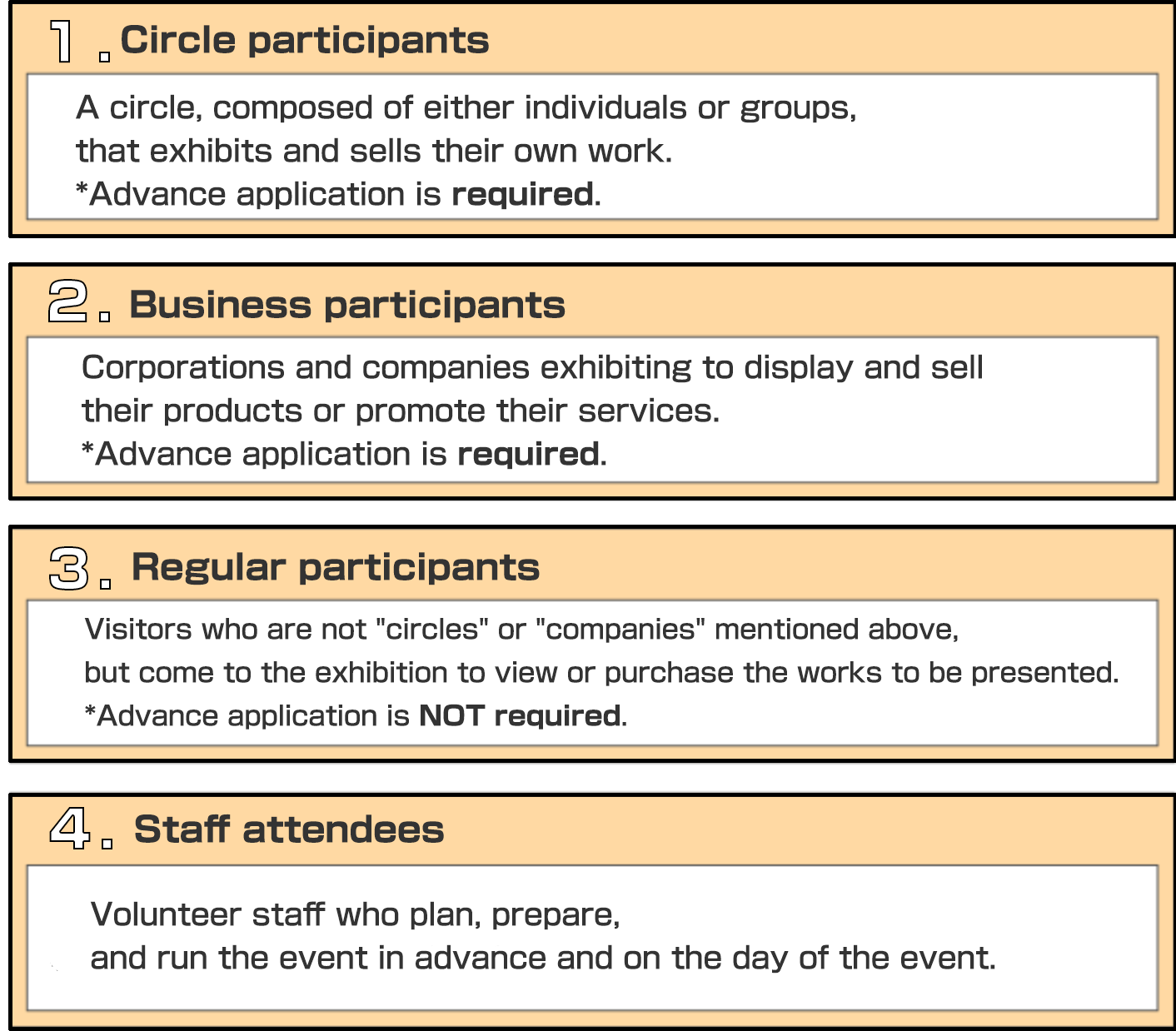 Please refer to the COMITIA website. The “Regular Attend Guide” is updated as needed. Please read it carefully first.