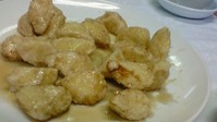 その後、遅めの昼食でガタケットスタッフ御用達の中華屋さんへ。構えはごく普通のお店なのに、出てくる料理はどれも絶品なのです。最後のデザートは「林檎の飴炊き」。熱々の飴が絡んだ林檎を手元の水椀に落とすと、外側の飴がパリッと固まり、シャリッとした食感が最高でした。こうした料理への創意工夫と引き出しの多さにいつも刺激されるお店です。参加者全員大満足の宴となりました。