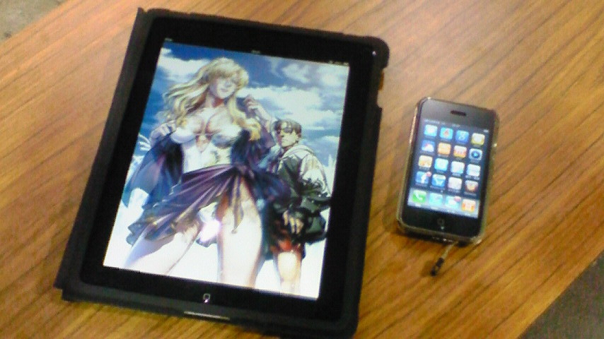さて、写真はオンライン申込でおなじみのサークルmsさんの持参のipad。明日は急遽、出展することになり、このipadを展示して、いろいろ触ってみてほしいそうです。東1ホール手前の一番奥です。興味のある方はぜひどうぞ。