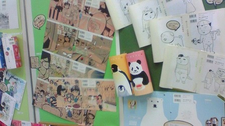 多彩なコミックスのカバーデザインを集めた展示が行われていました。