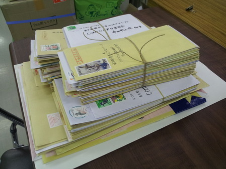 今日は郵送申込の〆切日で、封筒がどっさり。
