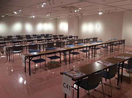 いつもは美術館として使われる会場に、同人誌即売会の机がずらり。