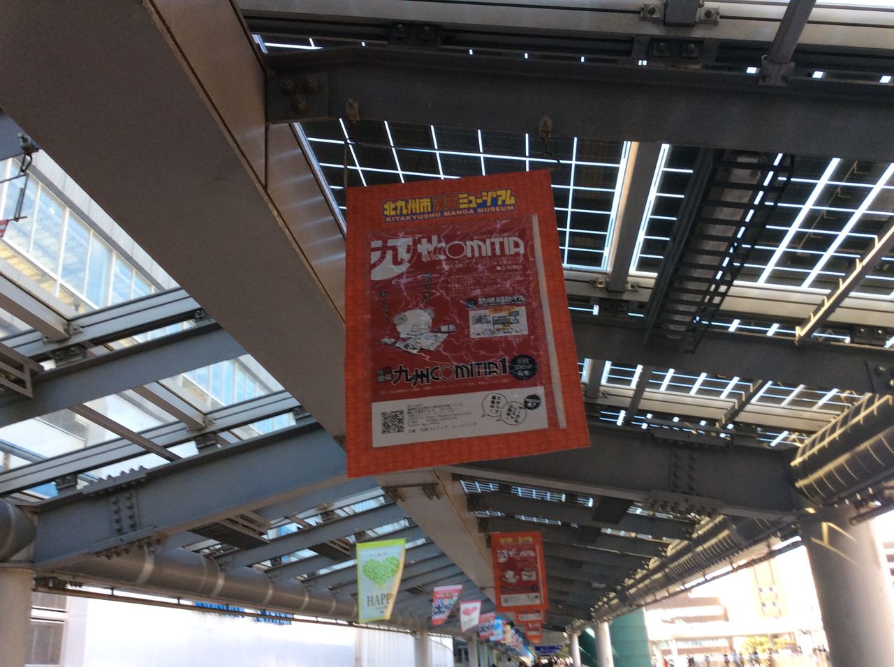 駅から会場までの連絡通路には「九州コミティア」の案内フラッグが。