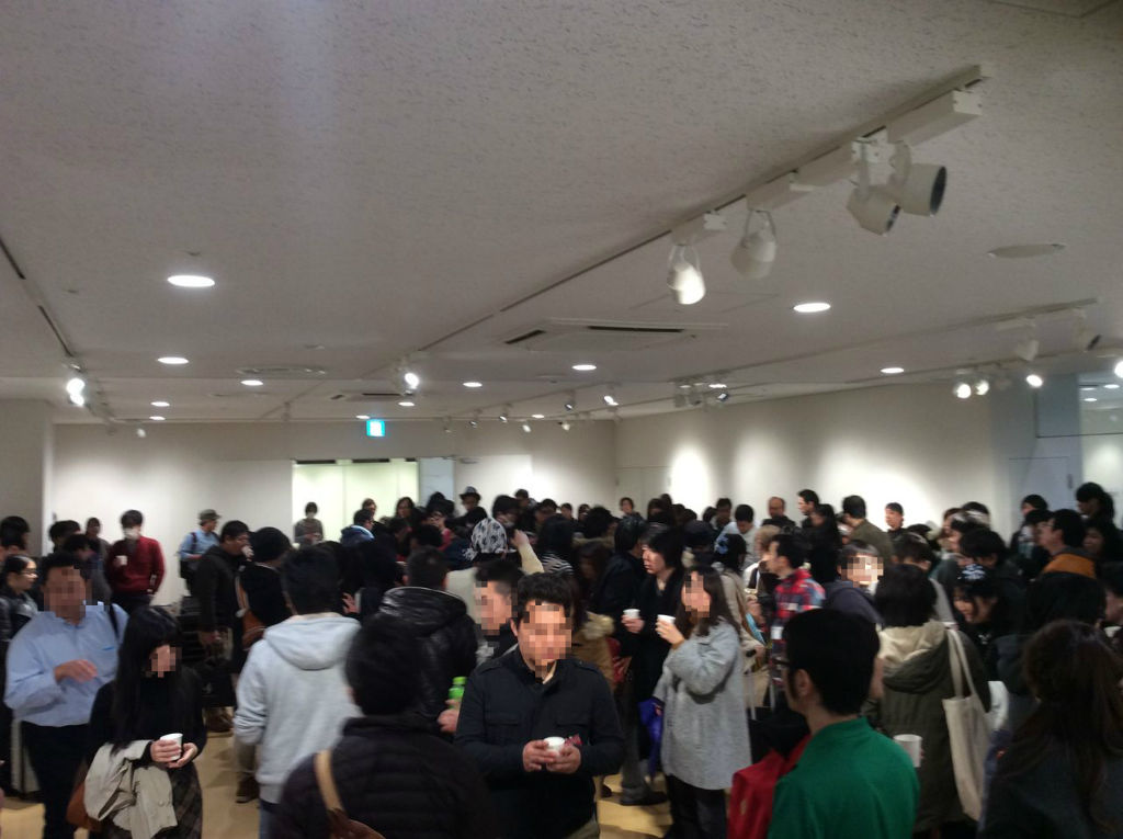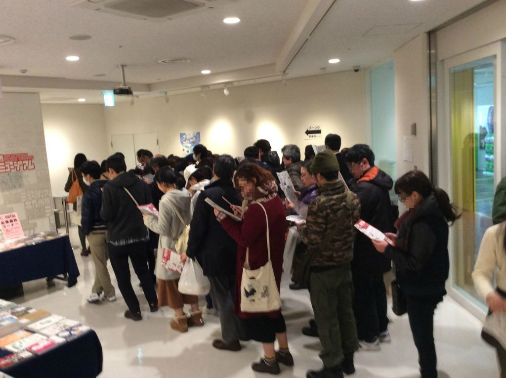 開場前の待機列には150人近くの人が並んだそうです(写真はその一部)。