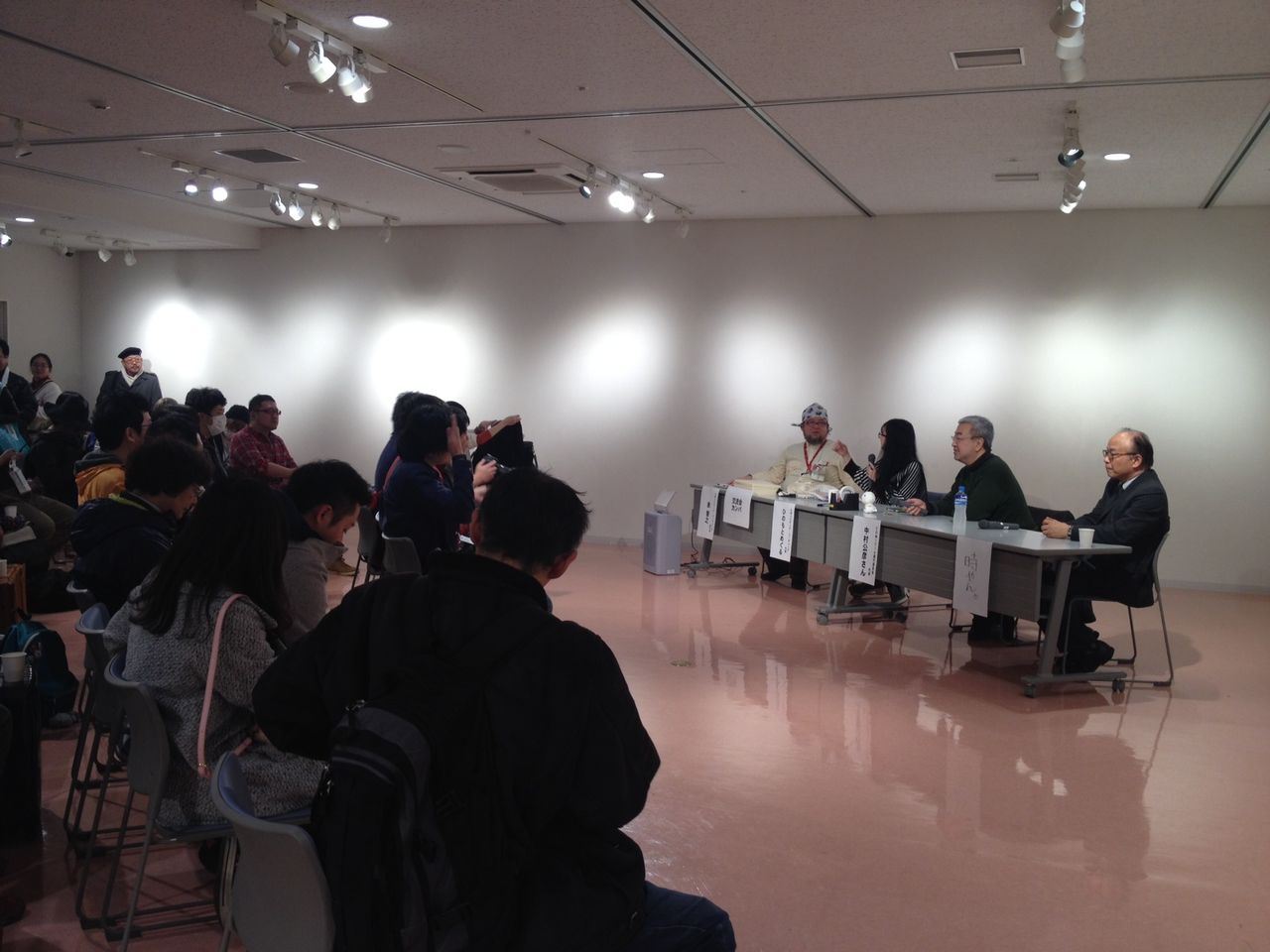 アフタートークでは、九州コミティア・ミーティング代表のひのもとめぐるさんと副代表の表智之さん、東京コミティア実行委員会代表・中村公彦、北九州市漫画ミュージアムの館長・田中時彦さんが登壇。楽しくお話ししつつ、9月の第1回に向けて展望を語りました。