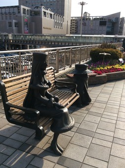 会場のあるJR小倉駅前では「銀河鉄道999」のメーテルと鉄郎がお出迎え。