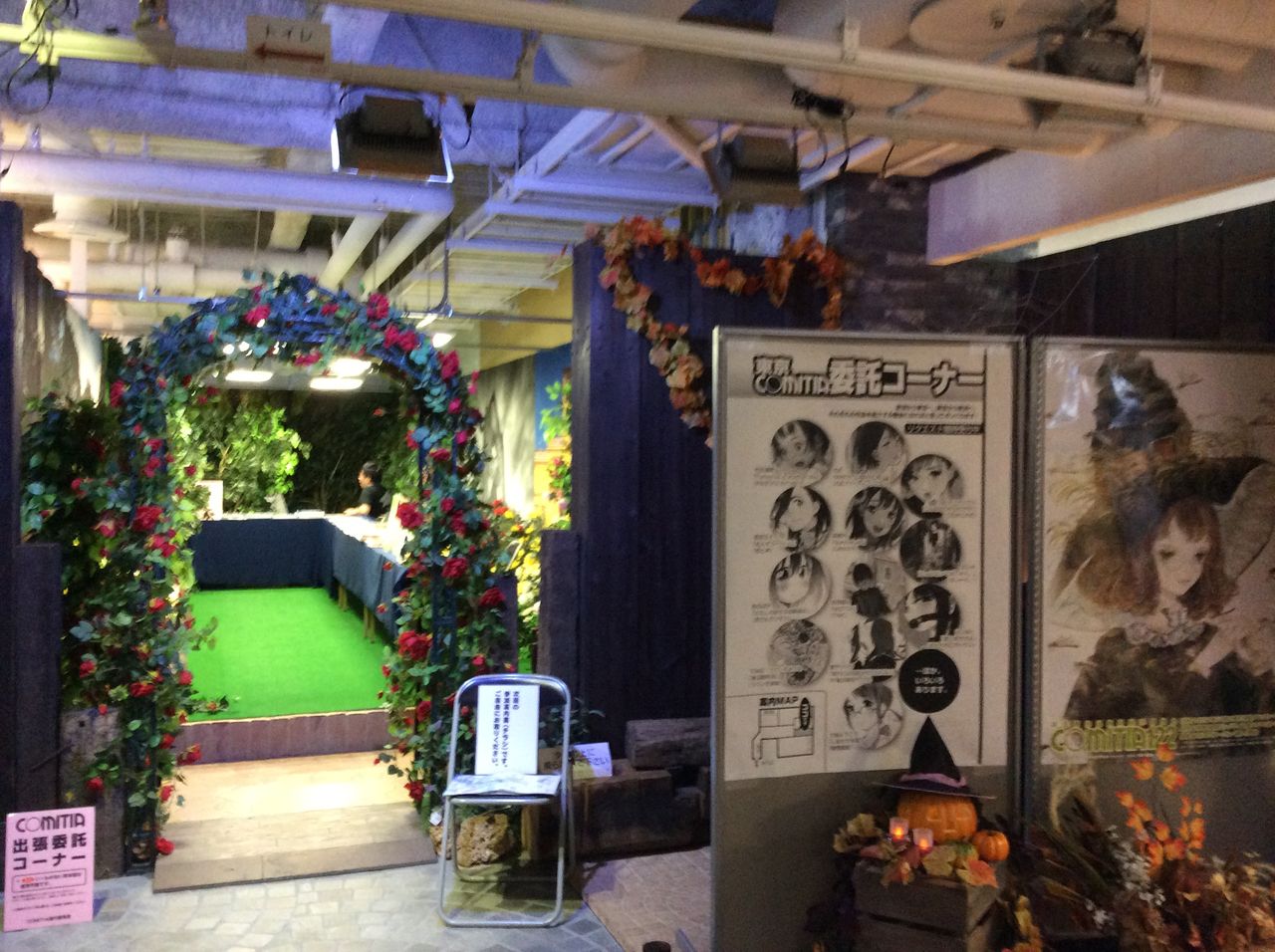 お花のアーチの中の東京コミティアの委託スペースやら、