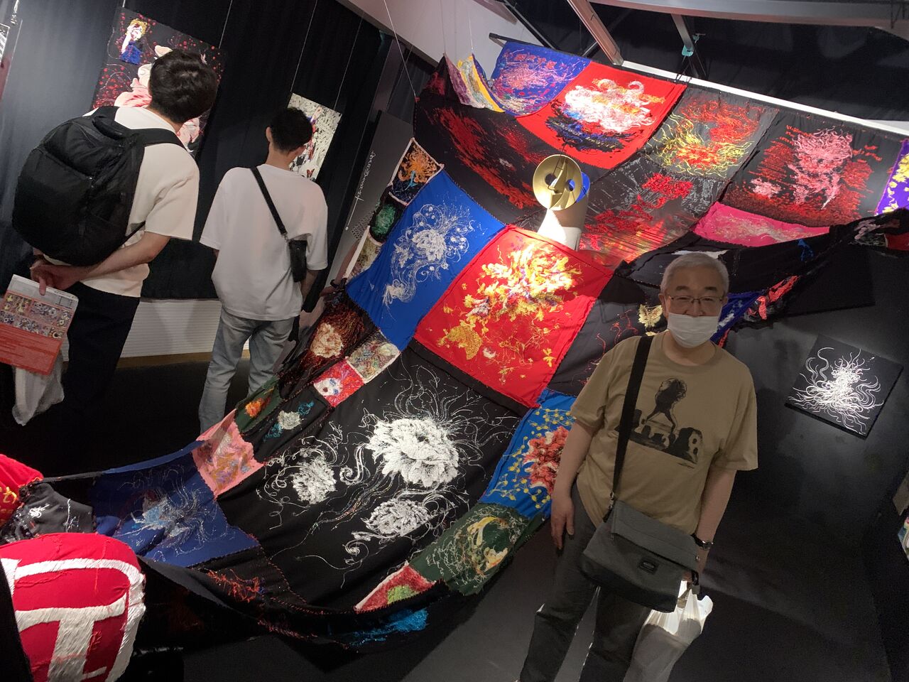 刺繍作家である吉元れい花さんが昨年、岡本太郎現代芸術賞の岡本太郎賞を受賞したのを期に企画されたもので、あえて刺繍の裏側を見せる展示に驚かされました。しかも巨大な刺繍の連なりの中央から「太陽の塔」のオブジェが突き破るように顔を出しており、これは1970年に大阪で開催された日本万国博覧会での「太陽の塔」建設時のエピソードの引用でもあるようです。