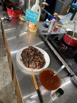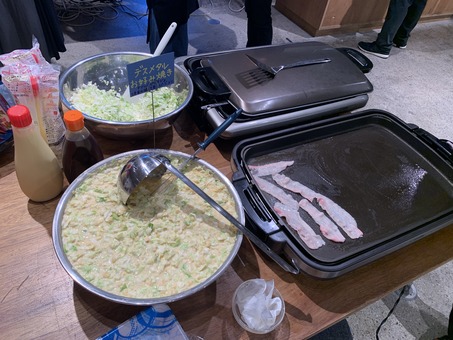 写真のお好み焼きの最初の一枚は作者の山口つばささん自らが切り分けてくれて、大盛り上がりでした。
