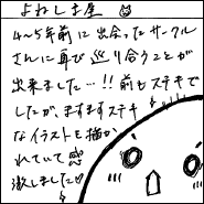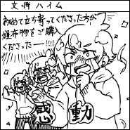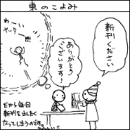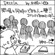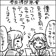 今回のティアズマガジンの記事で注目を集めたのは、「編集王に訊く」のインタビューに登場してくれた、Dr.マシリトこと白泉社会長・鳥嶋和彦さん。まさに「ラスボス登場」の雰囲気で、説得力のある言葉にみな感銘を受けたようです。また、丸岡九蔵さん(サークル「丸岡九蔵長屋」)が描いてくれた表紙イラストも、異世界の闇市っぽい雰囲気が「コミティアらしい」と好評でした。
