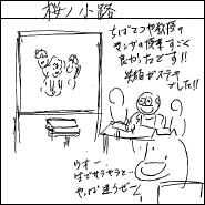 さて、会場内企画は2つ。1つは毎年2月恒例の文星芸術大学卒業制作展と共に行われる「ちばてつや教授のマンガの授業」。もう1つは一昨年ぶりの「ゲンロン ひらめき☆マンガ教室」。アトリウムのステージを時間帯で分けて開催しました。どちらも描き手にとって気になる企画となり、とくに前者は立ち見も出る好評ぶりでした。