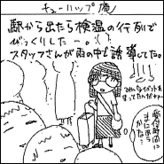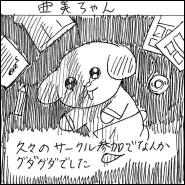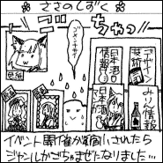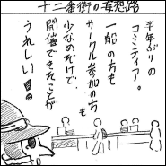 当日は朝からあいにくの雨。そして、やはりこの状況下で、前回の11月と比較しても、サークルの出席率は減り気味で8割に届かず。一般参加者も少し減って、カタログも久々に完売しませんでした。