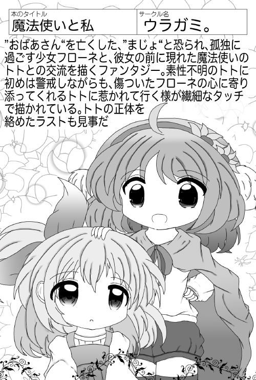 ●コロナでイベントが開催されず、キンドルで色々と探している時に丸岡九蔵さんの作品を知りました。コミティアに参加されていると知り、この作品を手に入れました。丸岡さんの世界観は非常に独特で、電子版で読んでいたうらまち酒場と同じ世界観の作品です。内容的にはノスタルジックな世界を感じる話ですが、劇中の世界はSF感満載の架空世界で、その世界感とそこで生きている人々、話の内容もすべてがお気に入りです。コミティアの開催でやっと紙の本を手に入れることができました気軽に読めるタブレットで読む電子もいいのですが、分厚い長編同人誌のページをめくる楽しさを久々に味わいました。(東京都・さめ ひろ)