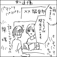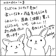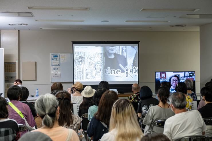 会場内企画は、コミティアでは長年お世話になっているマンガ家・belneさんの第25回文化庁メディア芸術祭功労賞受賞記念企画を行いました。メインはbelneさんの恩師・竹宮惠子先生(オンライン出演)との公開対談(記念企画ページにて対談映像公開中)。熱心なファンが100人以上、熱いトークをじっくり聴いてくれました。並行して、「新潟市マンガの家」で行われた記念展示「新潟とマンガとマンガ教育 belneのコミックワークショップ」展を一日限りで移設して展示。belneさんへのお祝いメッセージが書けるコーナーもあり、嬉しいコメントが並びました。