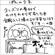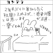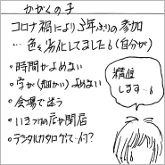 当日の感染症対策に伴う「入場手続き」はスタッフが経験を重ねたこともあってスムーズになり好評でした。自治体や会場のイベント開催ガイドラインも規制緩和されつつあります。今回はこれまで1スペース1脚までとしていたイスの追加を申込時のみ解禁しました。引き続き社会情勢なども見極めつつ、出来るだけ参加者の不便や負担が少ない形にしてゆきたいと思います。