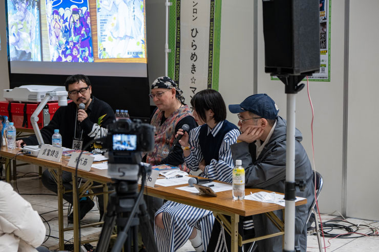 会場内企画は、コミティアでは3回目の実施となる「ゲンロン ひらめき☆マンガ教室 特別授業2022」。新しいマンガ家を育成する「ひらめき☆マンガ教室」の講師陣を招いたトークショーや作品講評会が行われ、多くの観衆が集まりました。こちらのイベントの様子はYouTubeで公開されているので、当日立寄れなかったり、来場がかなわなかった方はご覧になってみてください。