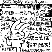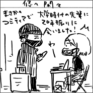 もう一つの会場企画は2月恒例の文星芸術大学マンガ専攻卒業制作展。今回は「文星タロット展」と称し、学生がそれぞれ1枚ずつ描いたタロットカードイラストを展示。多くの学生の作品をどう見せるかしっかり考えられた内容で楽しく拝見しました。22年3月に同大学学長を退任された、ちばてつや先生も教え子の様子を見に来場。参加した学生の皆さんもコミティアを大いに楽しんでくれたようです。彼らは前日夜の会場設営、閉会後の撤収作業にも大人数で参加してくれていて、たいへん助かりました。
