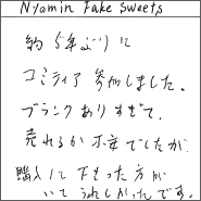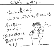 会場の東1・2・3・8ホールは昨年9月のJ.GARDENとの合同開催でも行った変則的な構成。当初は東4・5・6ホールを使用する予定だったのですが、会場側とも相談の上で急きょ変更しました。これは募集3500サークルに対し前述の通り4300を超える申込があり、落選数をできるだけ減らすために行った対応でした。さらに前回まで空けていたサークルとサークルの机の間を詰めました。サークルスペースがコロナ禍以前の面積に戻ったことで、最近の形に慣れた方からは不満の声がありました。その変更の経緯については事前にお伝えしていましたので、「仕方がない」と理解を示していただく声もそれ以上にありました。ご理解に心から感謝いたします。東8ホールは見本誌コーナーに加えて、久しぶりにキッチンカーが出店。少し離れたホールでしたが、名物のオムそばや、「コミティアに行ってきました。」どら焼きなどを求める人も多く訪れていたようです。