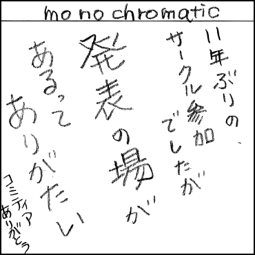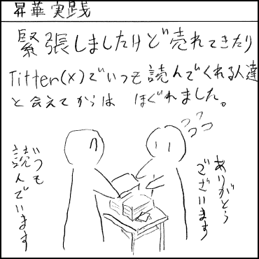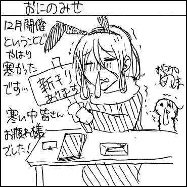 サークル数は前回の9月より微増したものの、一般参加者数は微減。12月の開催が一般参加者数に響いたのではないかと分析していますが、結果を見るまでは分からなかったというのが正直なところです。ティアズマガジンも完売せずでした。