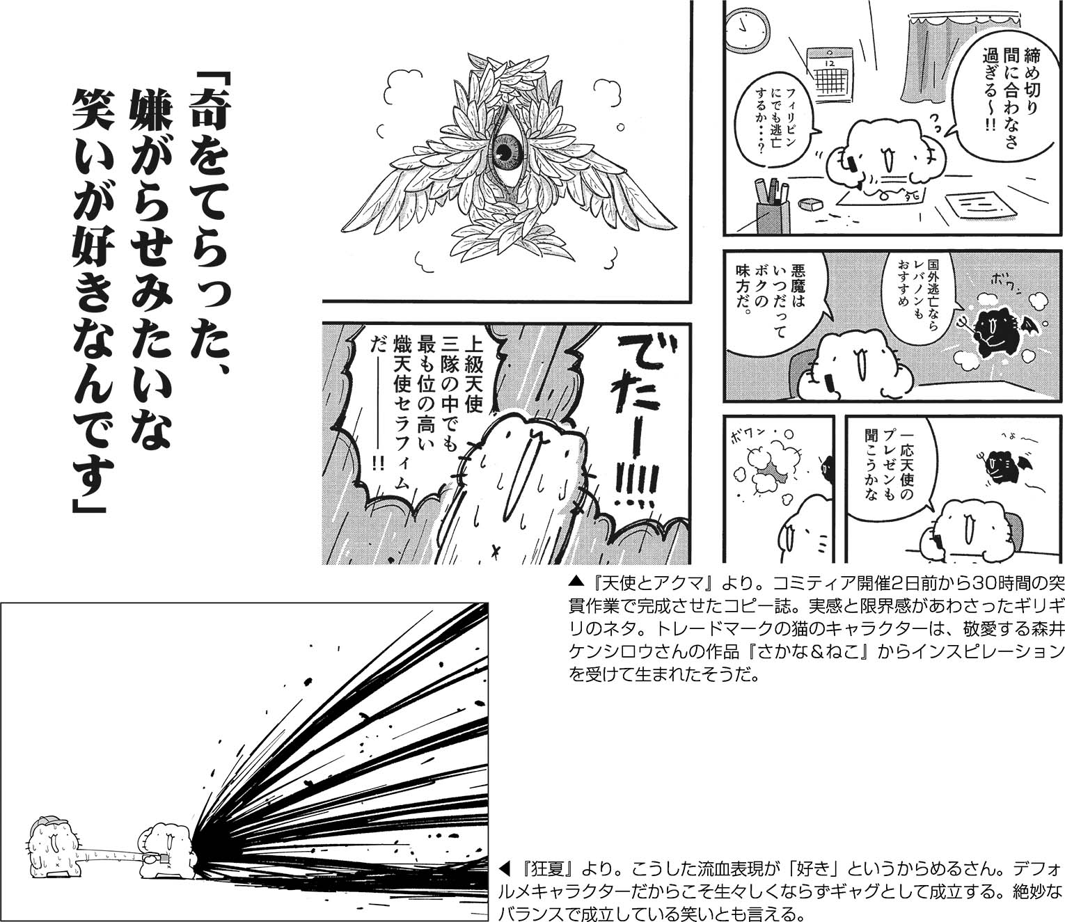 漫画家として実績を積みながら、視線は新しい分野にも向けられる。その姿勢は、「漫画に留まらない、存在しないキャラクターの創作全般を扱う組織」を目指した『非在人事部』というサークル名にも表れている。例えば『八十九番』のヒロインは仮想の存在でありながらSNSに独自のアカウントを持ち、彼女の名義で漫画執筆の依頼を受けるなど、メディアを横断した深みのある人物像を演出した。「最近はVTuberに目を向けています。『演者』とキャラクターが相互作用した新しい表現が続々と生まれているんです」と話すくのいちさんにとって、コミティアは重要であり続けている。「装丁やデザインにこだわった紙の本ならではの表現と、VTuberを始めとする仮想空間を利用した表現の融合を探る場所として活用していきたいですね」