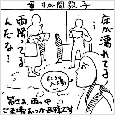 雨の影響で待機列に並ぶことを避けた方が多く、朝一の参加者の出足はいつもより大人しめでしたが、11時前後に急増。その勢いのまま、ティアズマガジンは13時すぎに完売しました。その後は15時の入場フリーになるまで、「一般参加者入場用チケット」の販売に切り替えています。この方式は一般参加者の人数把握とコントロールにも役立つため、当面は続ける予定です。