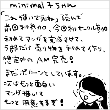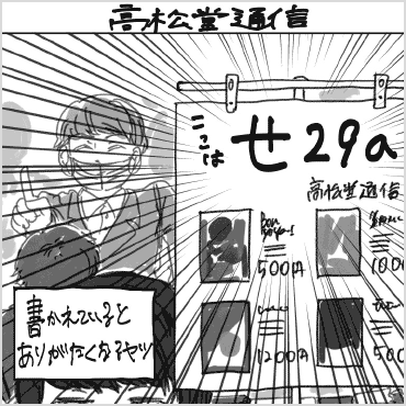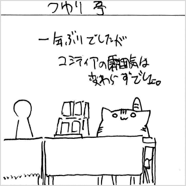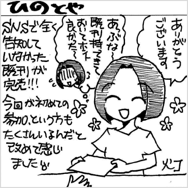 さて、147の目玉企画はコミティア40周年企画の一環として行った『コミティア魂』(フィルムアート社)の世界最速先行発売。会場中央付近に設置した販売ブースは事前段階から購入するつもりだった方、その場で興味を持ってくれた方が絶えず訪れ、持込1000部に対してほぼ完売に近い数が参加者の手に渡っていきました。3月2日の書店発売後の売れ行きも上々で、数日で重版が決定するほど好調のようです。