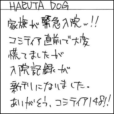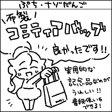 コミティア40周年記念企画として発売した布製「コミティアバッグ」は、十二分な数を用意したつもりでしたが13:40ごろに完売しました。同人誌即売会での買い物に特化したデザイン、というちょっと特殊なコンセプトでしたが、多くの方に手にとっていただいてありがたかったです。次回149に向けて色違いバージョンのものを再販できないか調整中です。
