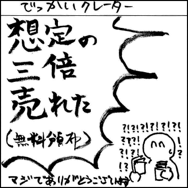 カタログはいつもより早い11時50分ごろに完売。「買えなかった」という声も少なからずありました。これは印刷部数をやや絞った数にしたためで、完売時間は想定内でした。そうせざるを得なかったのは、カタログ販売の場所が屋上展示場となったからです。物量の大きなカタログを当日朝に外の販売場所まで運び出すことが大変ですし、雨になった場合は濡れないように管理も必要になります。大量の部数を扱うのは難しい状況でした。なお、カタログのPDF版は開催終了後にBOOTHのコミティア公式オンラインショップで販売しています。