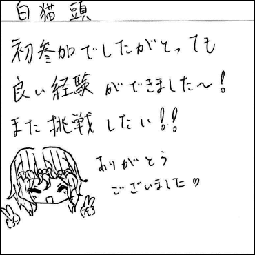 以上の通り反省点は多々あり、参加者からの不満の声も少なからずありました。そうした中でも各ホールともほどほどに盛況で、大きな事故や深刻なトラブルが起きなかったことだけは何よりでした。天気を始めとした運にも、だいぶ助けられたと思います。