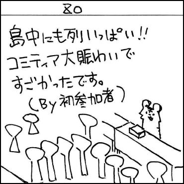 ということで今回も大きな事件や事故はなく開催することができました。反省点についても少しずつ改善していきながら、より良いコミティアを目指していきたいと考えていますので、引き続きご協力をよろしくお願いいたします。