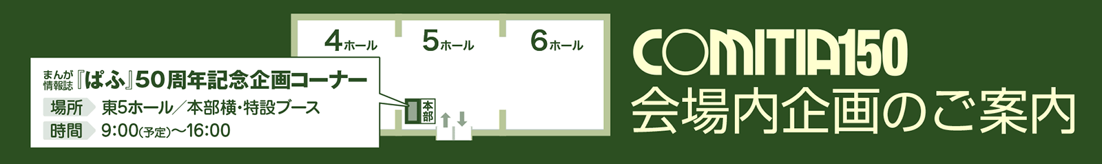 「COMITIA150」にご入場いただいた方は、どなたでも無料で会場内企画をご覧いただけます。