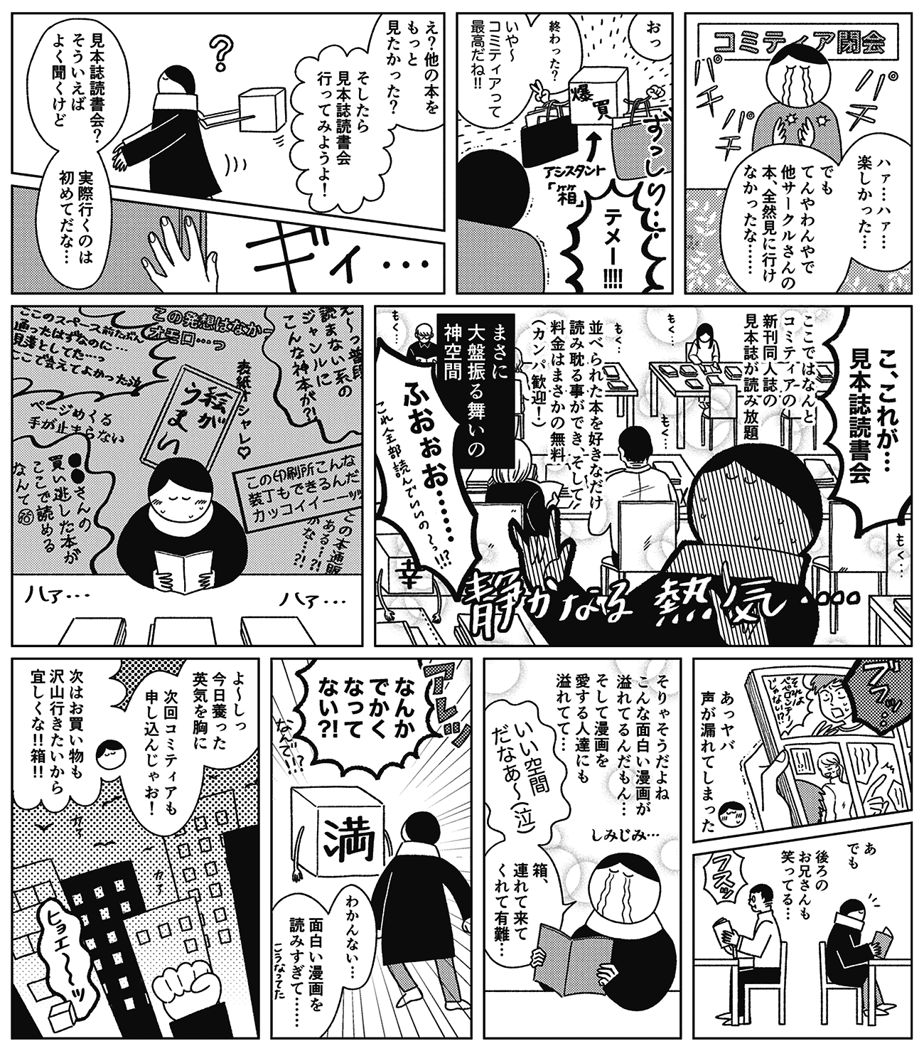 見本誌読書会は、コミティアの参加サークルから提出された見本誌を自由に閲覧できるイベントです。基本的にコミティア開催から約一週間後を目安に、都内の公共施設や会議室などで開催。直近のコミティアで参加サークルから提出していただいた見本誌を展示しています。詳しい説明は読書会のご紹介 をご覧ください。