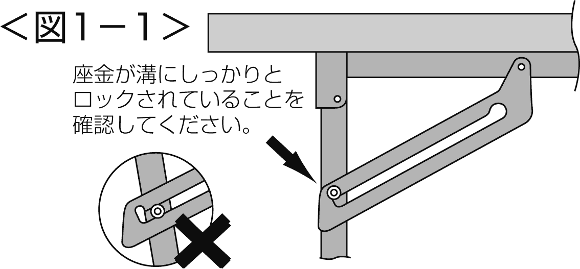 ※机を立てる際、ロックが掛かっていることを必ず確認してください(図1-1)。