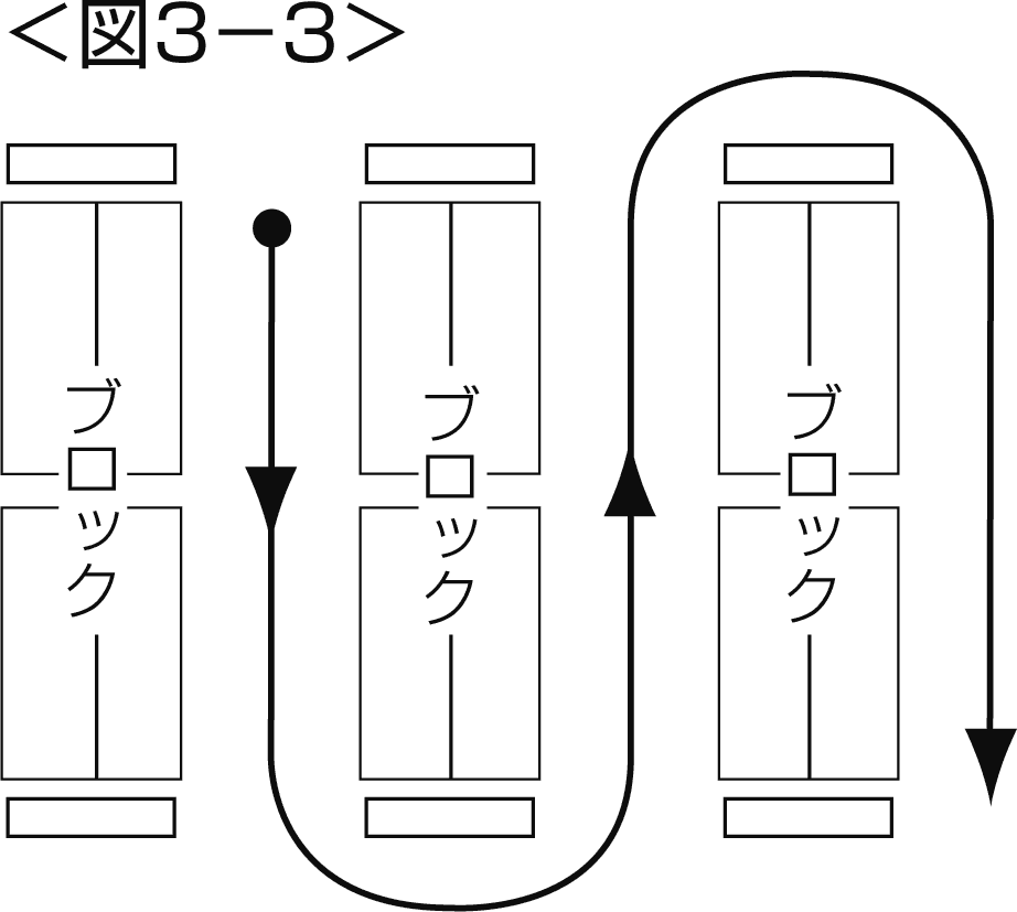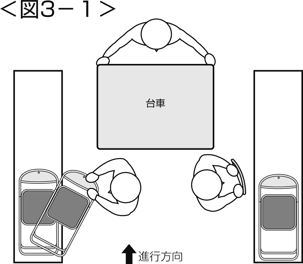 まずは三人一組になってください。一人が台車を移動させる係、後の二人がイスを机に置く係です(図3-1)。